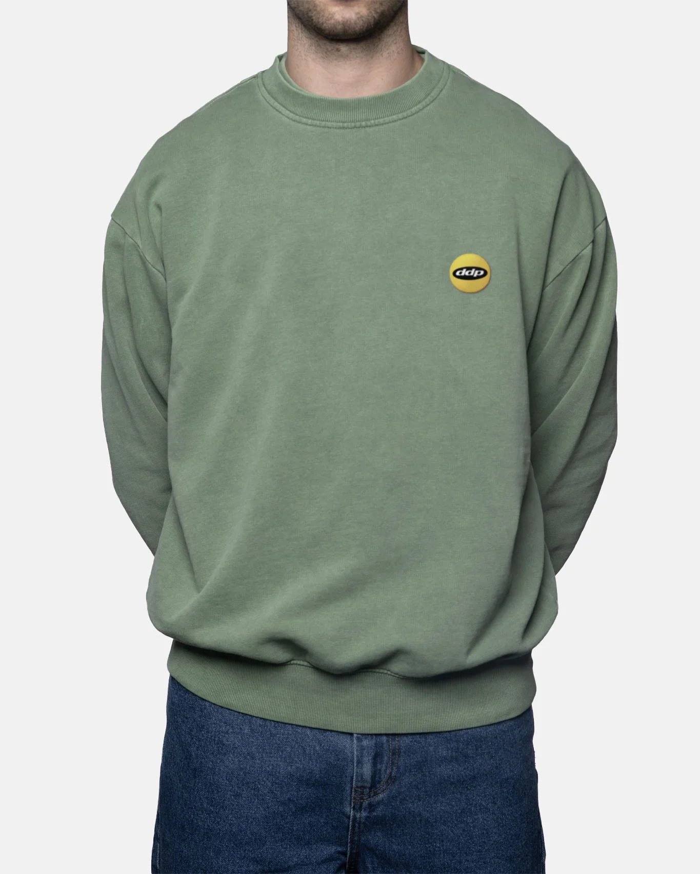Sweat DDP FRANCE : sweat crewneck oversize en molleton 350 g, réalisé en pièce teinte pour un rendu légèrement vieilli.